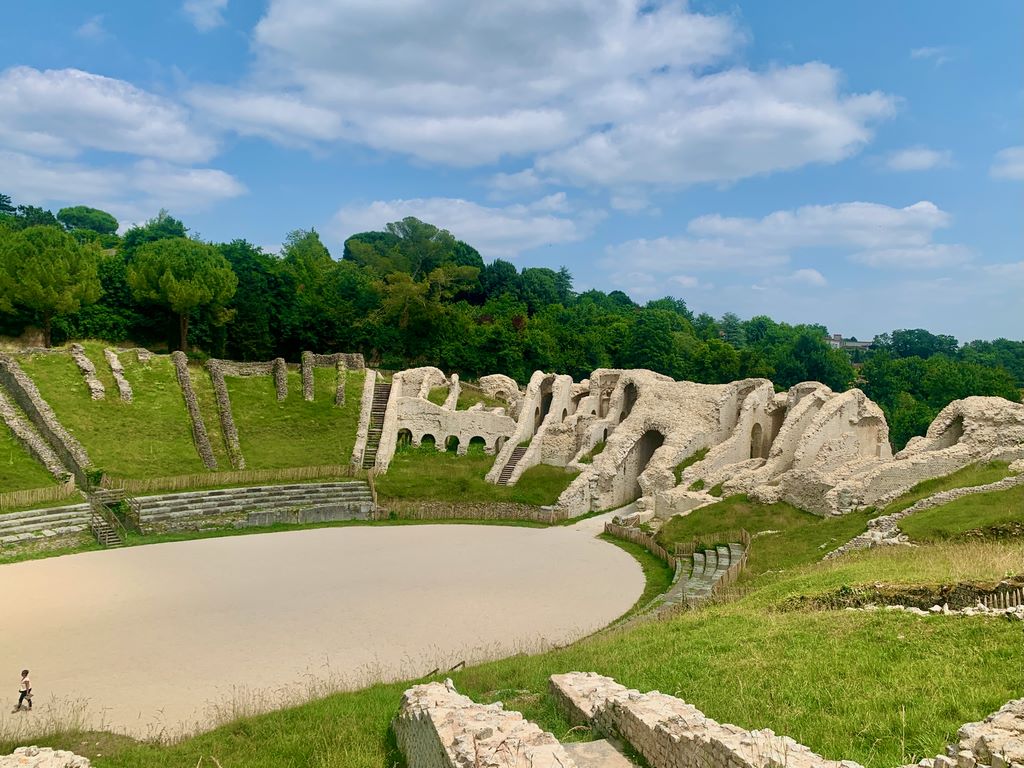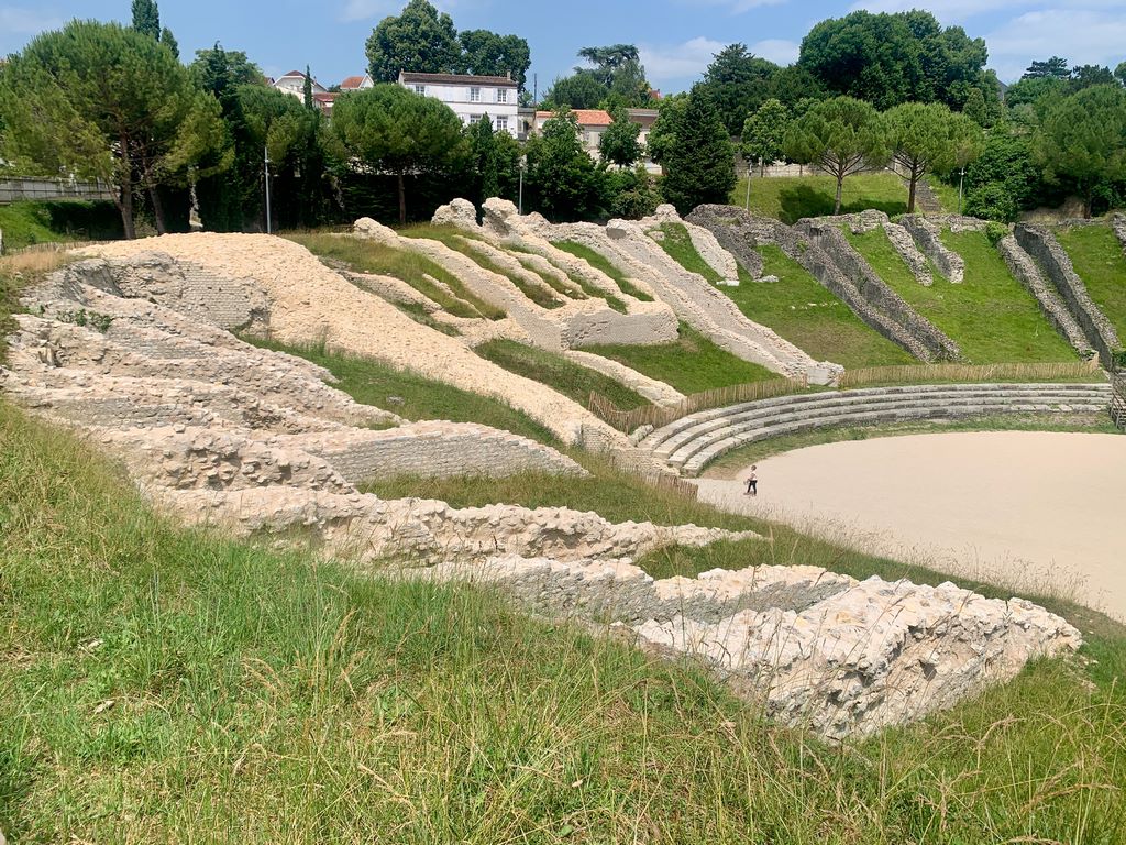 Saintes, avait aussi ses thermes, son aqueduc, ses temples et aussi bien sûr, son amphithéâtre qui lui donnait un air de petite Rome. Une arène aussi dans laquelle près de 15 000 spectateurs pouvaient se presser, acclamer les jeux, mais aussi les martyrs. Saint-Eutrope évangélisateur et premier évêque y sera décapité. Construit sous le règne de Claude, ce monument est un outil de romanisation. Le cirque et le sang, les bêtes et les gladiateurs, faisaient partie de l’éducation impériale. Un moyen de dire aux Santons : « Vous êtes Romains, vous aussi. Voici votre Colisée ! »