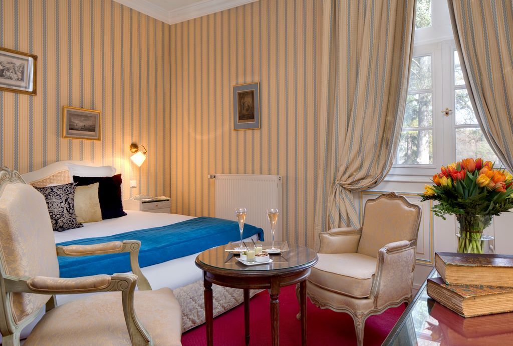 • chambre classique de 20m², vue sur les jardins à la française