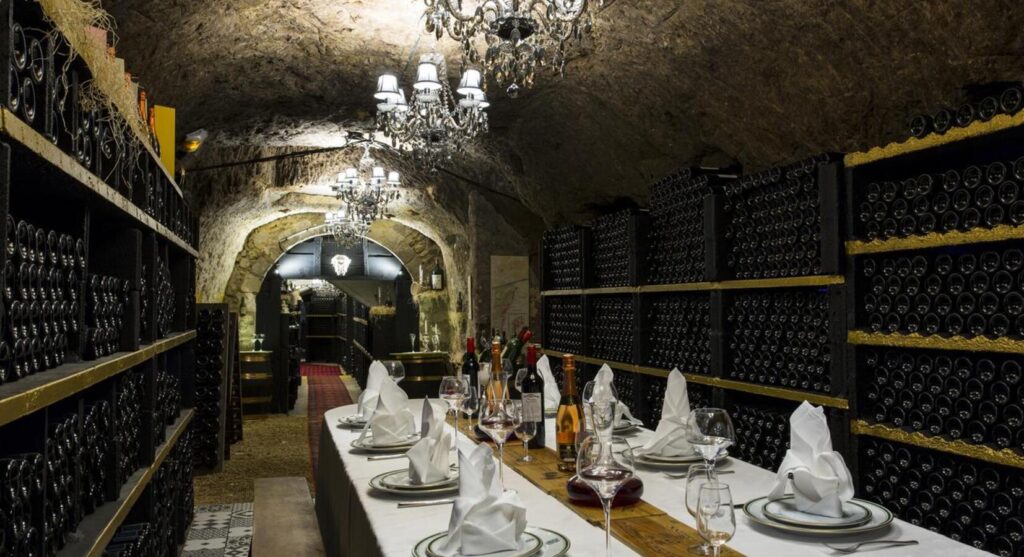 La cave de Beauvois abrite une impressionnante collection de grands millésimes. Une grille finement ouvragée en marque l’entrée. Ce caveau a été installé dans l’ancienne carrière de tuffeau ayant servi à édifier les tours du château. Entièrement réaménagé dans des tonalités noir et or, cet espace troglodytique, creusé à dix-huit mètres de profondeur, remonte aux origines mêmes du domaine. Les amateurs de grands vins peuvent y vivre une dégustation privilégiée, parmi une sélection de quelque 19 000 bouteilles. Visite de la cave tous les samedis à 17h30, uniquement sur réservation auprès de la réception au 02 47 55 50 11.