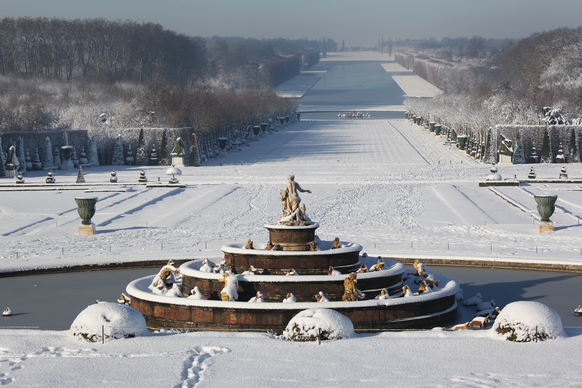 Château de Versailles. Vue sur le bassin de Latone et le grand canal. C’est la grande perspective que le maître jardinier a ouverte sur l’infini pour répondre au désir royal qui ne pouvait « souffrir les vues bornées ».