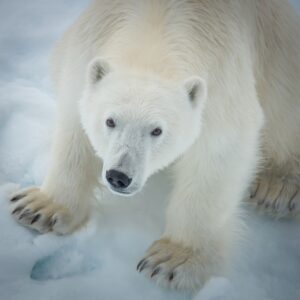Groenland. Rencontre avec un ours blanc ou Nanuq en inuit.