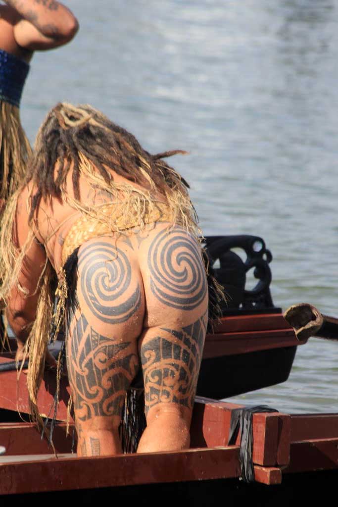 First of all, the challenge posed by the Waitangi warriors had to be met. André, a strong Breton, found himself alone against the imposing Maoris. He had to pick up a fern leaf placed on the ground to assure the warriors that we had come in peace. We then enter the house to watch a series of traditional dances, songs and games. The Pitowhenua troupe also demonstrate how to use the clubs Pif ! Paf ! Poum ! The blades of the adzes are brandished by the chief. "How beautiful it isexclaims a lady who is taking photographs of Maori gentlemen. The cultural performance ends with the traditional " haka "the war dance designed to frighten off enemies and made world-famous by the " All Blacks "In this cultural centre, you can also see jades, fabrics and canoes that have been handed down from generation to generation. The cultural centre also features jades, fabrics and canoes that have been handed down from generation to generation. As well as the world's largest ceremonial war canoe.