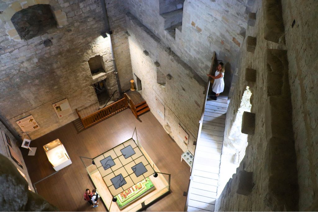 As you pass through the low, austere entrance to the Tour Moncade, you are immediately struck by the freshness of the stone. The spiral staircase, carved into the wall, invites you to make a slow ascent. Each worn step bears the marks of countless feet, soldiers, lords and simple servants. You can imagine your footsteps echoing through this stone tunnel, the flickering light of a torch casting moving shadows.