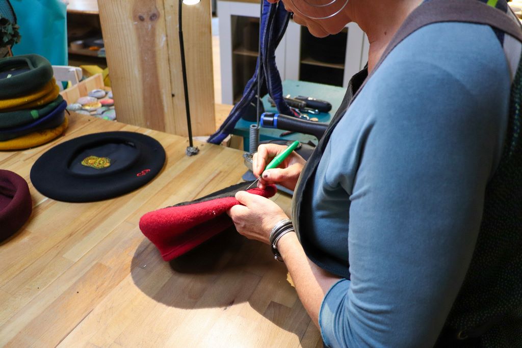 France. Orthez. La Manufacture de bérets guarantees a 100% handmade product, entirely made in France. Orthez Tourist Office.