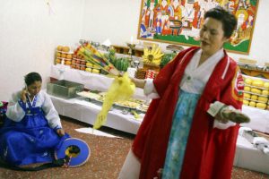 Kim Sun hee, mudang, shaman, during a shamanic ceremony