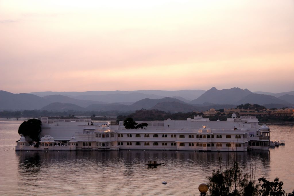 The Young Maharana Jagat Singh II (reign: 1734-1751) - 62nd sovereign of the Mewar dynasty - is said to have had it built in the 18th century, between 1743 and 1746, as a quiet retreat for himself and a few ladies, as his father had refused to allow him to use the Jag Mendir palace (the palace in the lake gardens built by his grandfather) for his amorous escapades. He wanted a summer retreat from the sweltering heat of the city, and chose this small islet in the heart of Lake Pichola to build a strikingly beautiful palace, entirely in white marble. At dusk, the sky above Lake Pichola turns pink. The slanting light, filtered by the warm Rajasthani air, caresses the white marble façades, which seem to gently catch fire. The lake, a peaceful mirror, extends this celestial spectacle, and the whole of Udaïpur is enveloped in an unreal light, as if frozen in a dream.