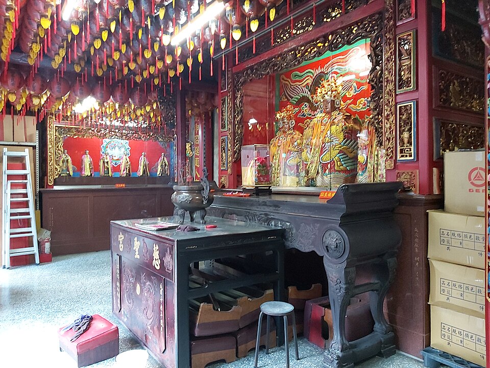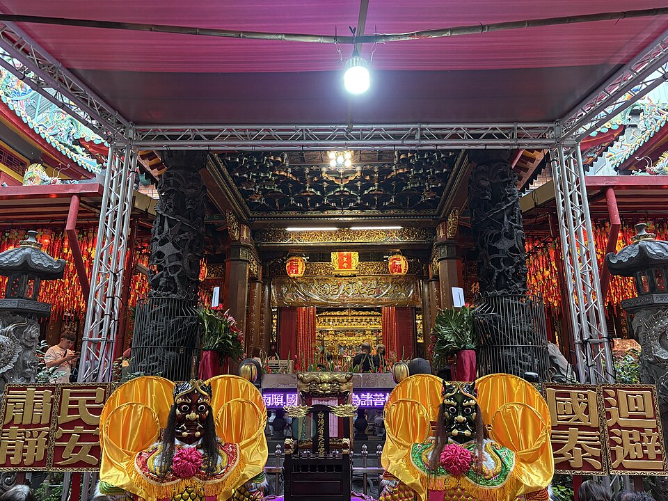 Au cœur du plus vieux quartier de Taipei, Wanhua, se dresse le temple Longshan. Il a été érigé au XVIIIe siècle par des immigrants venus du Fujian (Chine continentale). C’est l’un des lieux de culte les plus anciens et les plus fréquentés de la ville. Classé monument historique national en 2018, il incarne le style classique du sud de la Chine. Reconstruit après les séismes puis les bombardements alliés de 1945, le temple est un espace vivant, où les pratiques religieuses traditionnelles s’inscrivent dans le quotidien. Dès l’entrée, le visiteur est accueilli par des toits en « queue d’hirondelle » d’une finesse rare et des colonnes de bronze uniques à Taïwan, où des dragons sculptés semblent s’animer. Le tumulte de la ville s’efface derrière la fumée des bâtons d’encens et les prières. Des fidèles déposent des offrandes de fleurs et de fruits frais sur de longues tables rouges. Le temple abrite plus d’une centaine de divinités. La figure centrale est Guanyin, la déesse de la Miséricorde, dont la statue est miraculeusement restée intacte lors des bombardements de la Seconde Guerre mondiale.