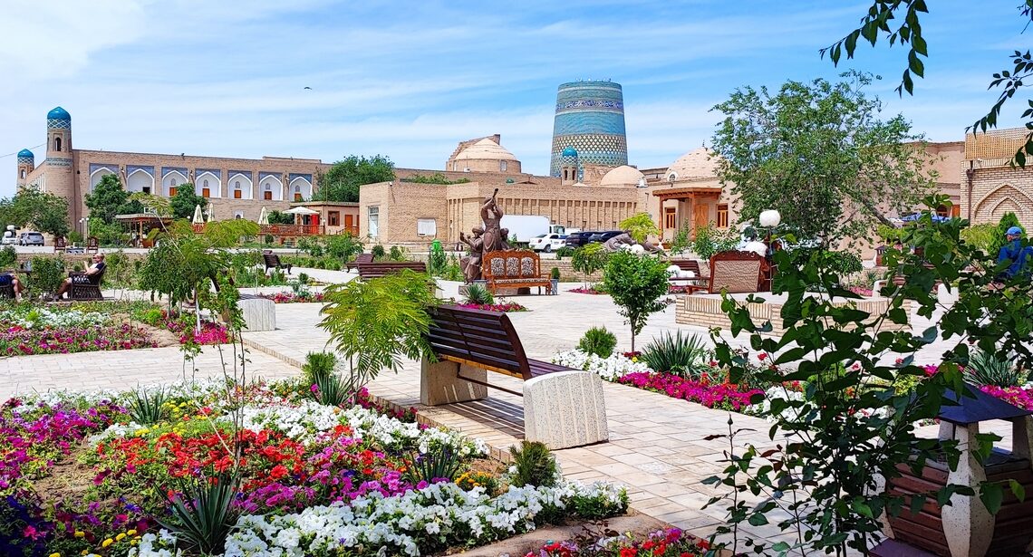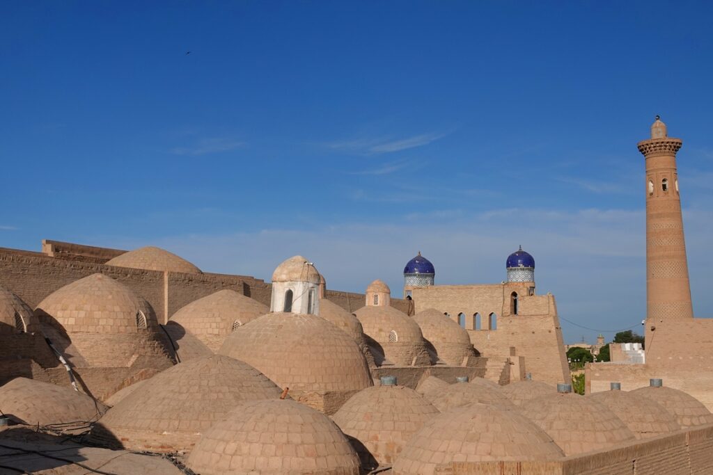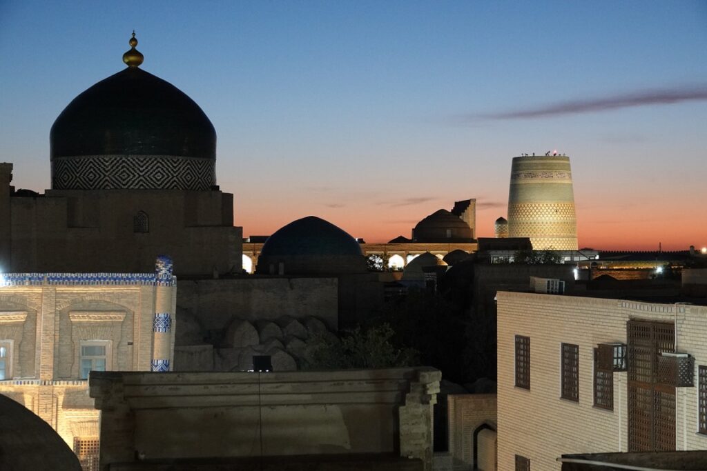Khiva est séparée en deux parties : Dichan-Kala, la ville extérieure, et Itchan-Kala, la ville intérieure, retranchée en ses murailles crénelées et ondulantes de briques et de pisé. La plupart des constructions encore debout datent des XVIIe, XVIIIe et XIXe siècles. Un programme de réhabilitation engagé depuis près de quarante ans l’a rendue tellement léchée qu’on a parfois l’impression de se retrouver dans un parc à thèmes.