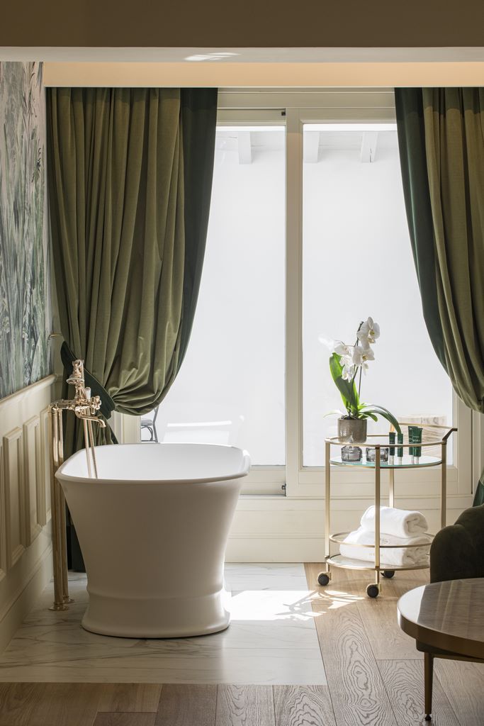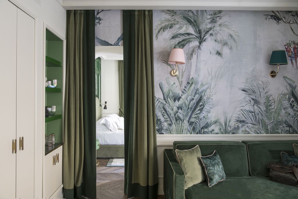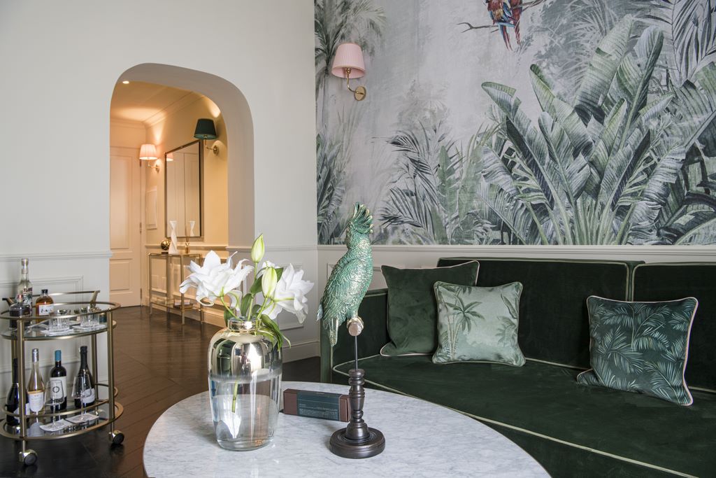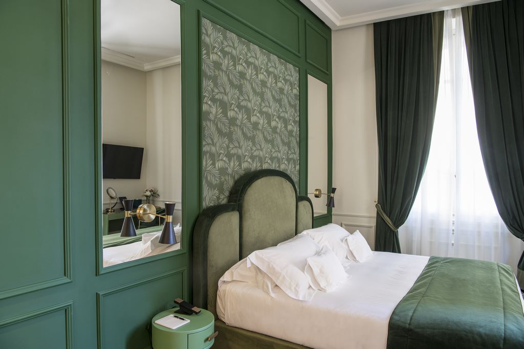 Les tonalités de vert qui traversent La Gemma ne relèvent pas d’un simple choix décoratif : elles en sont la signature émotionnelle. Du vert profond des tentures au vert tendre des détails subtilement disséminés, la palette évoque à la fois les marbres toscans, les jardins secrets et la patine du temps. Ces nuances distillent une sensation immédiate d’apaisement. À La Gemma, le vert devient langage , celui d’un luxe apaisé, en parfaite résonance avec l’âme florentine.