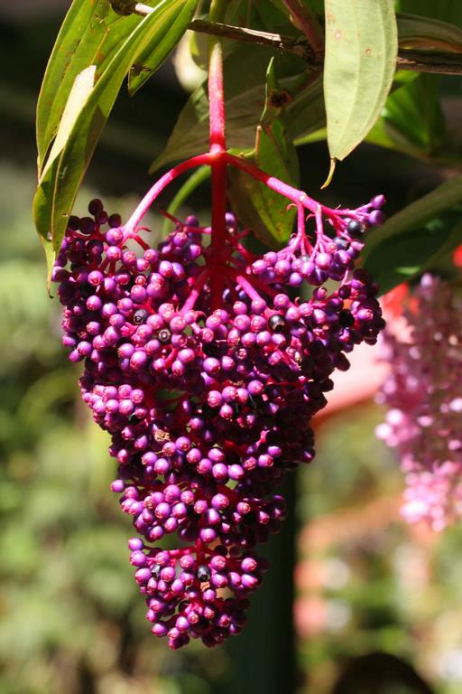 À mesure que les fleurs fanent, elles laissent place à de petites baies d’un violet pourpre, semblables à des perles de verre, prolongeant l’intérêt décoratif de la plante pendant des mois. Au Jardin des Mascarins à Saint-Leu ou au Jardin de l’État à Saint-Denis, elle est la coqueluche des photographes. Les guides expliquent souvent que sa beauté vient de ses bractées (des feuilles modifiées) qui protègent les véritables fleurs, créant cet effet de cascade colorée. Elle incarne le luxe végétal, cette part d’exotisme qui transforme un simple coin en un salon de réception naturel.