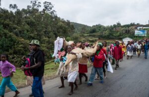 Famadihana ceremony, or Turning of the Bones, a Malagasy tradition of celebrating with bodies of their dead ancestors. Madagascar.