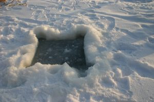 Norvège. Trou de plongée pour la pêche au crabe royal.