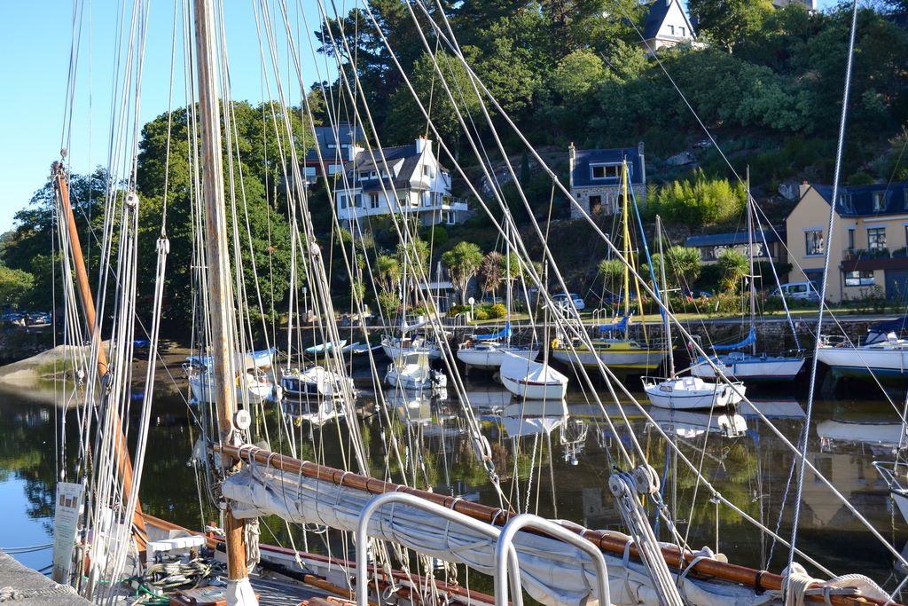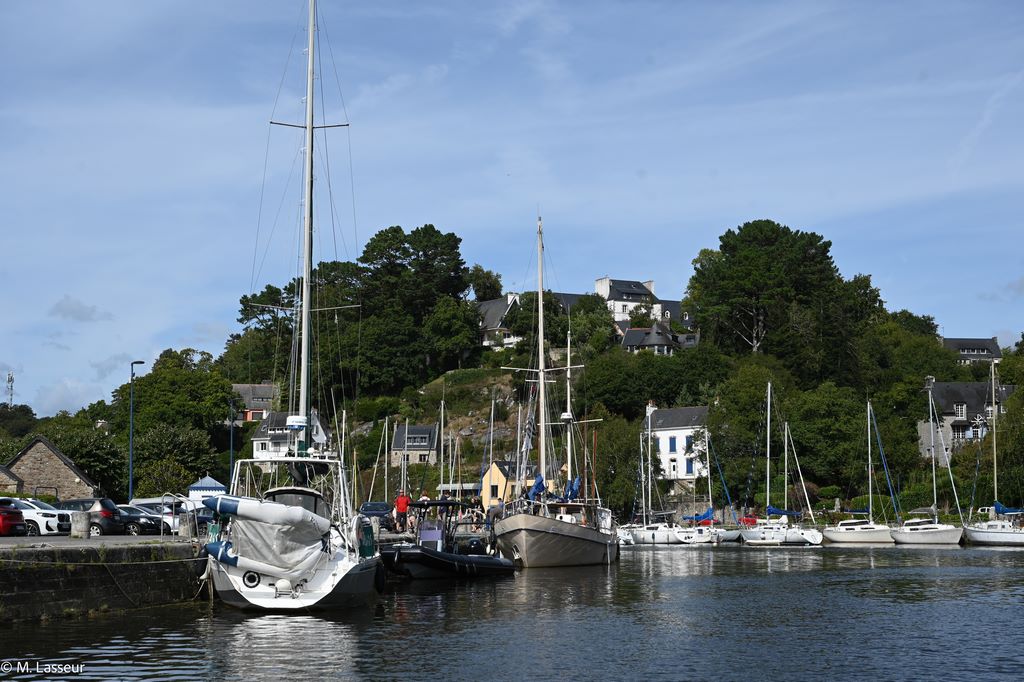 Une odeur de varech emplit l’air. Le port se dévoile au détour du quai Théodore Botrel ; il bat au rythme des marées, gorgé de sel et de vent. Les mâts dressés griffent le ciel, forêt de bois et de cordages à l’assaut des nuages. Chaque bateau, quille posée dans la vase ou bercée par l’onde semble prêt à repartir pour le grand large, comme si l’Atlantique n’attendait qu’un signe.