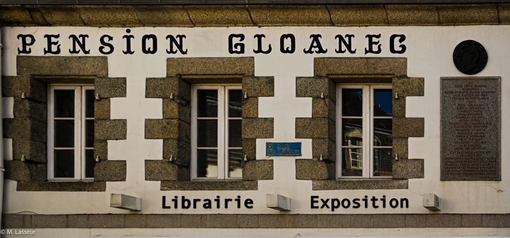 Au cœur du bourg, la pension Gloanec fondée en 1860 accueillait les visiteurs avec une rigueur douce : chambres modestes, repas simples mais copieux. Elle appartenait à des gens ordinaires : Marie-Jeanne Gloanec, surnommée « la mère Gloanec », et son mari. Ce fut l’auberge des artistes de l’Ecole de Pont-Aven, tels que Paul Gauguin, Paul Sérusier, Emile Bernard et bien d’autres. Les repas étaient simples : soupe épaisse, galettes, cidre local. Les peintres s’installaient dans des chambres à l’étage, posant leurs chevalets près des fenêtres ouvertes sur la rivière. Ils discutaient la lumière, la couleur, la forme mais connaissaient le poids des bols de soupe. Aujourd’hui, le bâtiment d’origine abrite une librairie avec des expositions et des événements littéraires. Fidèle à son histoire artistique, elle offre un espace de rencontre et de réflexion autour de l’art et de la littérature.