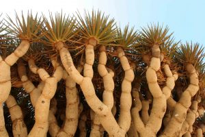 Les feuilles persistantes en forme de glaive du sang-dragon captent l’humidité des brumes qui tombent sur Socotra.